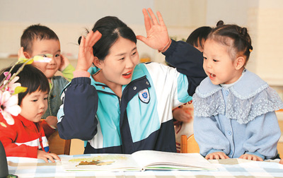 近年来,山东省东营市积极推动公办幼儿园、普惠性民办幼儿园、社会力量、社区共同发展兴办托育教育,为婴幼儿提供全日托、半日托、计时托、临时托等服务,同步落实托育补贴、托位补助、高标准发展提升项目等扶持政策,构建起政府引导、多方参与、布局合理、普惠为主的多层次、多元化托育服务体系。图为日前,东营市东营区辛店街道童话林幼儿园托育班,孩子们在老师陪伴下做游戏。