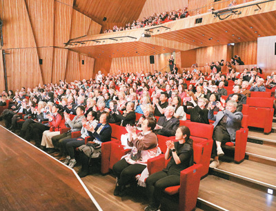 观众在演出结束后鼓掌。