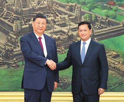 本报金边4月17日电(记者李婕、白元琪)4月17日晚,国家主席习近平同柬埔寨首相洪玛奈在金边和平大厦举行会谈。两国领导人一致同意携手构建新时代全天候中柬命运共同体,宣布2025年为“中柬旅游年”。
