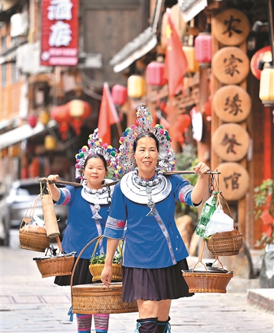 在广西壮族自治区柳州市三江侗族自治县林溪镇程阳八寨岩寨屯,侗族百家宴吸引不少游客慕名前来体验游玩。侗族百家宴又叫“长桌宴”,于2008年被列入自治区级非物质文化遗产代表性项目名录。在程阳八寨岩寨屯,有一支侗族百家宴厨娘队,她们白天上山采茶,日落后在鼓楼前摆起百家宴,招待八方游客,成为当地特色的文旅名片。