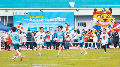 近日,在福建省福州市仓山区,2025年福建省青少年橄榄球锦标赛暨2025年全民健身T1(非撞式)橄榄球系列赛事活动精彩上演。赛事分小学U9组、小学U12组以及初中组和高中组,还首次推出T1橄榄球规则,吸引了500余名青少年运动员参赛。图为橄榄球运动员在比赛中。