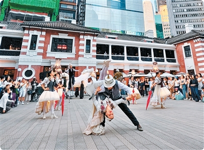 “法国五月艺术节”系列活动之一的“幻夜舞会”近日在香港大馆检阅广场上演。舞者脚踩高跷、头顶仿制电灯和蜡烛装饰,随着法语乐曲翩翩起舞,带领观众感受19世纪末法国街头表演的魅力。