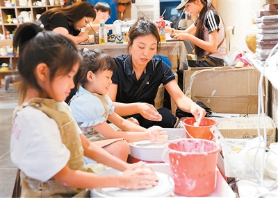 进入暑期,新疆伊犁哈萨克自治州迎来旅游旺季,独特的自然风光和人文景观吸引大批游客。伊犁州文旅部门统计数据显示,今年1至7月,伊犁州累计接待国内游客5493.29万人次,同比增长10.31%。图为游客在该州伊宁市六星街体验陶艺制作。