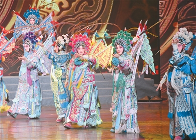近日,大型情景文艺演出《遇见泉州》在福建泉州歌舞剧院上演。演出通过传统戏曲与时尚科技跨界融合,展示了闽南传统文化风采。图为高甲戏表演。