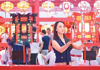 2025“藁城·宫灯”第三届产业博览会日前在河北省石家庄国际会展中心举办,旨在进一步推动宫灯产业高质量发展。图为观众在博览会现场欣赏各式彩灯。