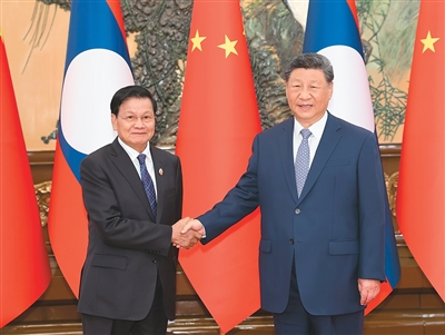 习近平强调,当前国际和地区形势发生复杂深刻变化,双方要以长远眼光和战略思维看待和把握中老关系,在涉及彼此核心利益和重大关切问题上坚定相互支持。要以明年两国建交65周年为契机,谋划开展好各领域交往。中方愿同老方深化治党治国经验交流,支持老挝人民革命党筹备和开好十二大。要以中老铁路运营和沿线开发为抓手,持续拓展“黄金大通道”辐射带动效应,推动重点项目提质升级。要深化防务、执法安全等合作,对跨境赌博、电信网络诈骗犯罪等持续高压严打。中方祝贺老挝成为上海合作组织对话伙伴,愿同老方在中国东盟合作、澜湄合作、东亚峰会等地区机制下深化协调和配合,促进地区和平与发展。