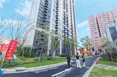 9月15日,上海市静安区谈家桥小区迎来首批回搬居民。谈家桥城市更新项目总建筑面积5.39万平方米,在老旧小区原址新建住宅小区,并配套商业设施,将成为集居住、购物、教育为一体的社区。图为居民走在新建成的谈家桥小区内。