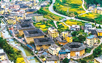 秋日时分,福建省龙岩市大山深处的永定客家土楼,景美如画。