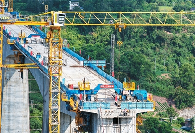 9月24日,由中铁十二局承建的渝万高铁(新建重庆至万州高速铁路)五步河双线特大桥主跨顺利合龙。渝万高铁正线全长251公里,设计时速350公里,是国家“八纵八横”高速铁路主通道包(银)海、京昆通道的重要组成部分。五步河双线特大桥主跨总跨度392米,最高墩达105米,此次合龙为渝万高铁全线按期通车奠定基础。