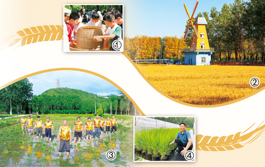 枫林晚憩、碧芳环翠、杨柳田舍……走进京西稻保护性种植区,一个个富有诗意的名字,连接起了大片京西稻田和创意式的活动实践地。割稻谷、扎稻草人、DIY草帽、参观谷仓、品京西稻粥,来此研学的孩子能够感受到一颗京西稻从田间到餐盘的全过程,这种既好玩、又能互动的环节,把田间变成学习农耕知识的自然课堂。