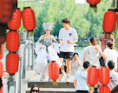 今年暑假,佟锭颜的旅拍店迎来不少回头客。凭借细致入微的服务、别具韵味的民族服饰和精湛的摄影技术,店铺在竞争激烈的古城旅拍市场中脱颖而出,成为游客争相打卡的热门店铺。