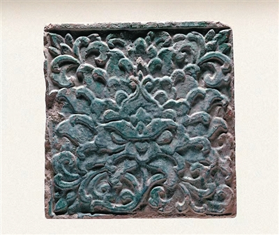 1974年在西夏陵区6号陵出土的绿琉璃花纹方砖是西夏时期典型的琉璃建筑材料,也在本次展览中亮相。琉璃建筑构件在中国历史悠久,起源于北魏,唐代已在高等级建筑上大量使用,鼎盛于元明清时期。西夏吸收和继承了中原的琉璃制作技术,并将其应用在西夏陵的建造中,因此西夏陵出土了大量琉璃建筑构件,造型优美,制作精良,是不可多得的艺术珍品。