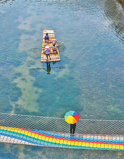 8月5日,浙江省湖州市德清县佛堂村,溪流中撑船人与小桥上撑伞人的“同框”画面被摄影师捕捉,让人联想到诗句“你站在桥上看风景,看风景的人在楼上看你”。近年来,该地大力发展生态经济和休闲旅游业,拓宽了老百姓的致富路。