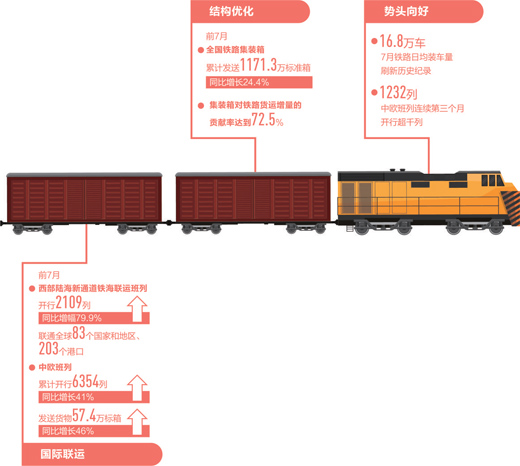 前7月,铁路货运交出一份亮眼成绩单,发送量累计完成20.1亿吨,同比增长4.3%。