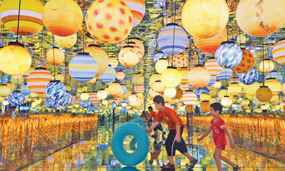 图为8月9日,小朋友在金沙滩啤酒城一大型5D全息光影艺术展中游玩。 张进刚摄(人民视觉)