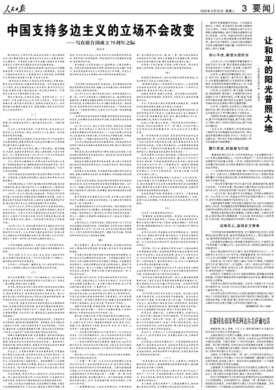 中国支持多边主义的立场不会改变