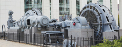 大连博物馆先后征集到大化集团有限责任公司的3台压缩机(图⑤)。2005年,大化集团有限责任公司整体搬迁。2012年,大化集团先将两台已退出使用的大型往复式空气压缩机捐献给大连博物馆。2016年,大连博物馆又将大化人于1955年自己设计制造的中国第一台2400马力大型氮气压缩机征集入藏,陈列在门前广场。3台压缩机成为大连工业发展的见证。