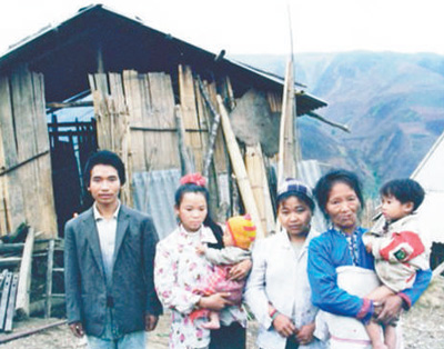 刀正华的第一张全家福,是他们家1998年从大山里搬到云南省金平苗族瑶族傣族自治县的南科新寨(现龙凤村)后不久拍摄的。照片里,他的母亲和妻子抱着两个女儿,来串门的妻妹站在中间,26岁的他穿着向别人临时借来的衣服站在妻子身旁。一家人身后,是当时刚建好的新家。
