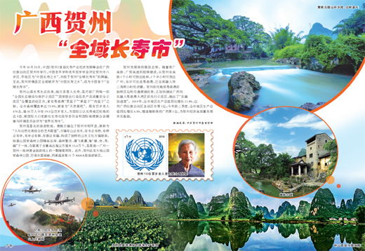 今年10月25日,中国(贺州)首届长寿产业经济发展峰会在广西壮族自治区贺州市举行,中国老年学和老年医学学会评定贺州市八步区、平桂区为“中国长寿之乡”,并授予贺州“全域长寿市”的牌匾。至此,贺州所辖县区全部被评为“中国长寿之乡”,成为中国首个“全域长寿市”。
