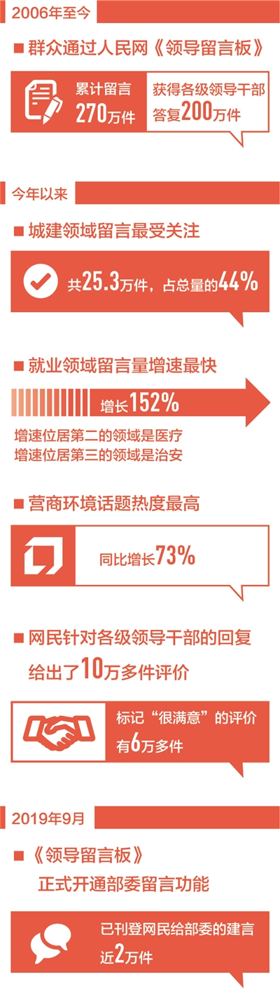 2019年底,《领导留言板》开通“部委留言”功能,科技部、工信部、人社部等10多家“部委办局”先后通过不同形式,与网友互动,倾听、回应人民呼声。