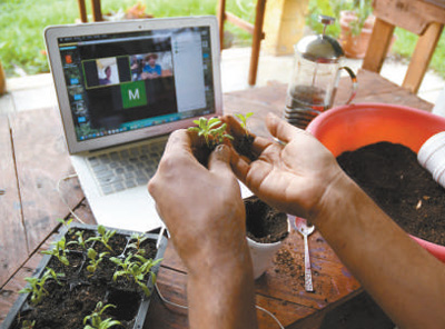 在危地马拉首都危地马拉城,当地专家通过网络课堂教授有机种植方法。 |