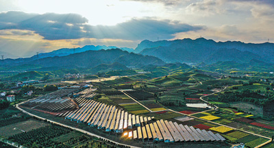 近年来,浙江省金华市武义县不断发展“菌光互补”项目,实现群众增收致富。该县壶山街道上端头村建成光伏发电站,年发电量达2850万千瓦时,同时以光伏电站代替原有的遮阳网,为底部棚内食用菌的生长营造良好环境。目前年生产食用菌1125吨,带动周边村民200余人就业。图为上端头村“菌光互补”项目。