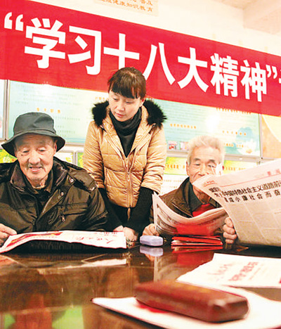 党的十八大召开后,河北省永清县后奕镇董相庄村,村民在工作人员辅导下,学习十八大精神。 |