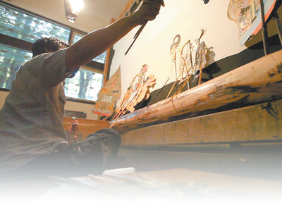 印度尼西亚梭罗艺术学院的教师正在教授哇扬皮影戏表演。 |