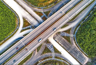 图为近日,泸州市城市二环线,汽车行驶在立交桥上。