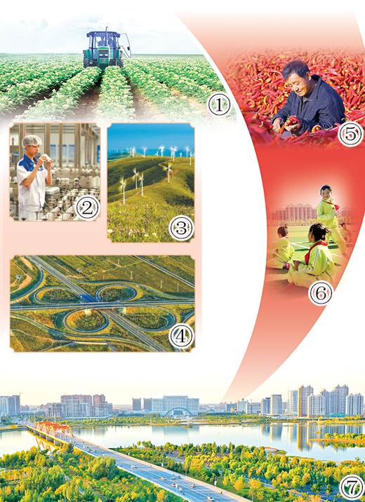 图⑤:鄂尔多斯市鄂托克前旗辣椒种植户喜迎丰收。
