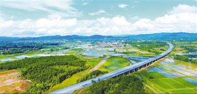 近年来,江西省抚州市广昌县着力打造“畅安舒美”公路出行环境,不断完善城乡交通基础设施建设,为乡村振兴赋能提速。图为5月8日拍摄的广昌县头陂镇西港村外的广吉高速。广吉高速于2019年正式通车,是江西省重要的入闽、入湘通道之一。