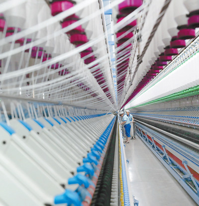 6月15日,江苏省南通市崇川区的一间数字化纺纱车间内,生产线正在繁忙运转。数字化纺纱车间采用全流程国产设备生产线,生产效率提高10%以上,吨纱综合成本下降1000多元,实现了纺纱自动化、智能化。
