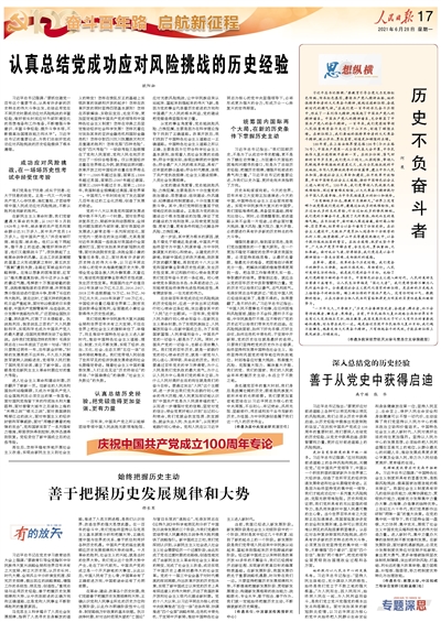 认真总结党成功应对风险挑战的历史经验(庆祝中国共产党成立100周年专论)
