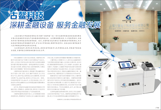 在深耕金融设备领域的同时,依托公司在金融行业良好的形象和客户关系,古鳌科技也积极延伸产业链,致力于打造互联网科技金融信息智能服务平台。