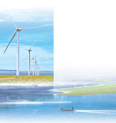 上图:甘肃省张掖市甘州区平山湖风能发电集阵。 |