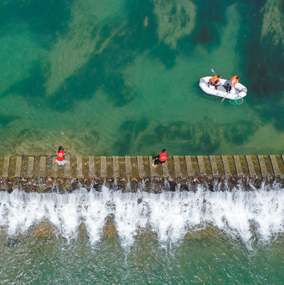 7月6日,浙江省杭州市临安区湍口镇迎丰村的“河小二”党员志愿者在对塘溪进行日常河道保洁及巡查。近年来,杭州市临安区积极推进“五水共治”,定期开展护水宣传、河道保洁、水质监测等护河巡河相关活动,建设“幸福河湖”,共同守护水美家园。
