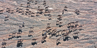 7月7日,甘肃省阿克塞哈萨克族自治县红柳湾镇加尔乌宗村牧民饲养的数百头骆驼前往夏季牧场。