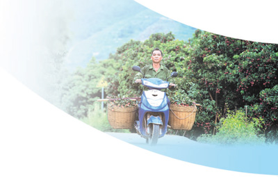 在广西壮族自治区梧州市苍梧县的省级无公害农产品示范基地,果农用摩托车装运荔枝。 |