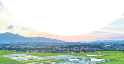 湖南省永州市道县的村庄与生态循环种养基地相映成画。 |