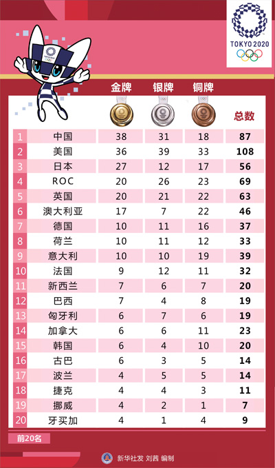 东京奥运会金牌榜