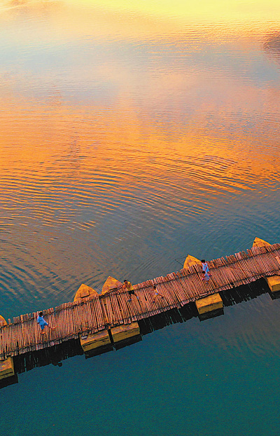 8月17日傍晚,湖南省道县潇水河县城段,市民从桥上走过。近年来,道县加快立体交通网络布局建设,县乡村路网通畅率达100%,让群众享受到交通大环境带来的便利和实惠,促进地方经济快速发展。