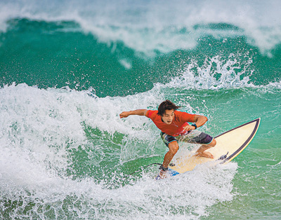 9月11日,第十四届全运会冲浪比赛在海南万宁落幕。图为参赛选手在比赛中。 |