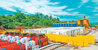 图为涪陵页岩气田国产5500型全电压裂机组。 黄志海摄(影像中国)