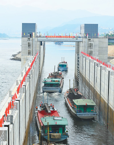 10月28日,船舶通过闽江水口航运枢纽闸室驶向闽江航道。
