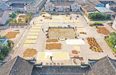 图为在埠头村广场,农民正在晾晒秋粮。