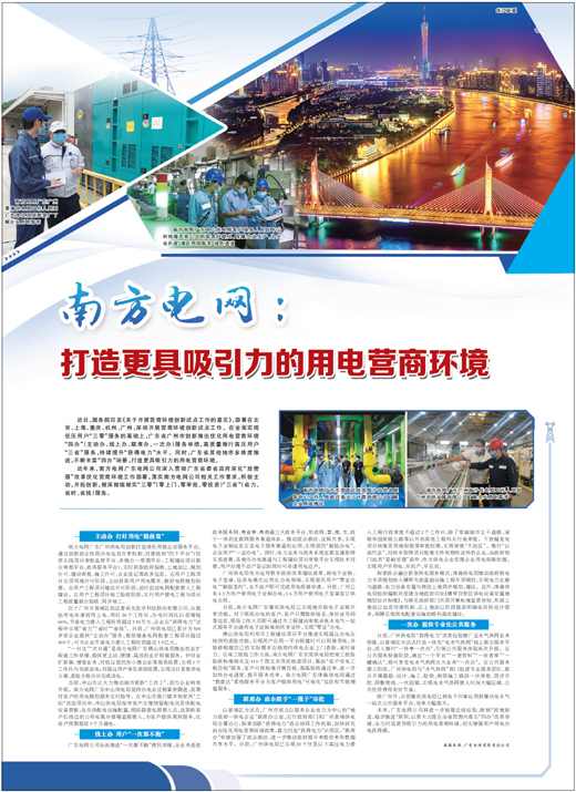 近日,国务院印发《关于开展营商环境创新试点工作的意见》,部署在北京、上海、重庆、杭州、广州、深圳开展营商环境创新试点工作。在全面实现低压用户“三零”服务的基础上,广东省广州市创新推出优化用电营商环境“四办”(主动办、线上办、联席办、一次办)服务举措,高质量推行高压用户“三省”服务,持续提升“获得电力”水平。同时,广东省其他地市多维度推进,不断丰富“四办”场景,打造更具吸引力的用电营商环境。