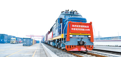 一月五日,一列满载数码产品等货物的中欧班列从四川省德阳市黄许镇站驶出,开往俄罗斯莫斯科别雷拉斯特物流中心。