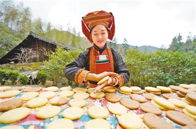 图为1月18日,当地村民在制作糍粑。