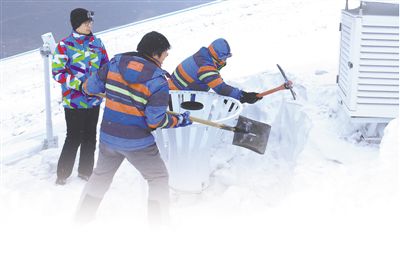 北京冬奥会张家口赛区气象服务团队队员正在清除观测设备周边积雪,确保赛区气象专用设备正常运行。 |