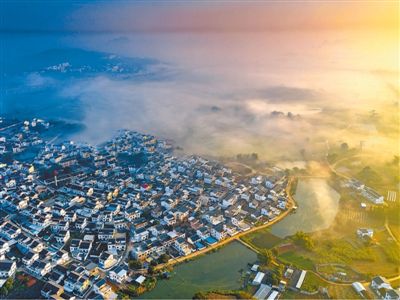 1月19日,广西壮族自治区崇左市扶绥县渠黎镇渠新村在薄雾间若隐若现。